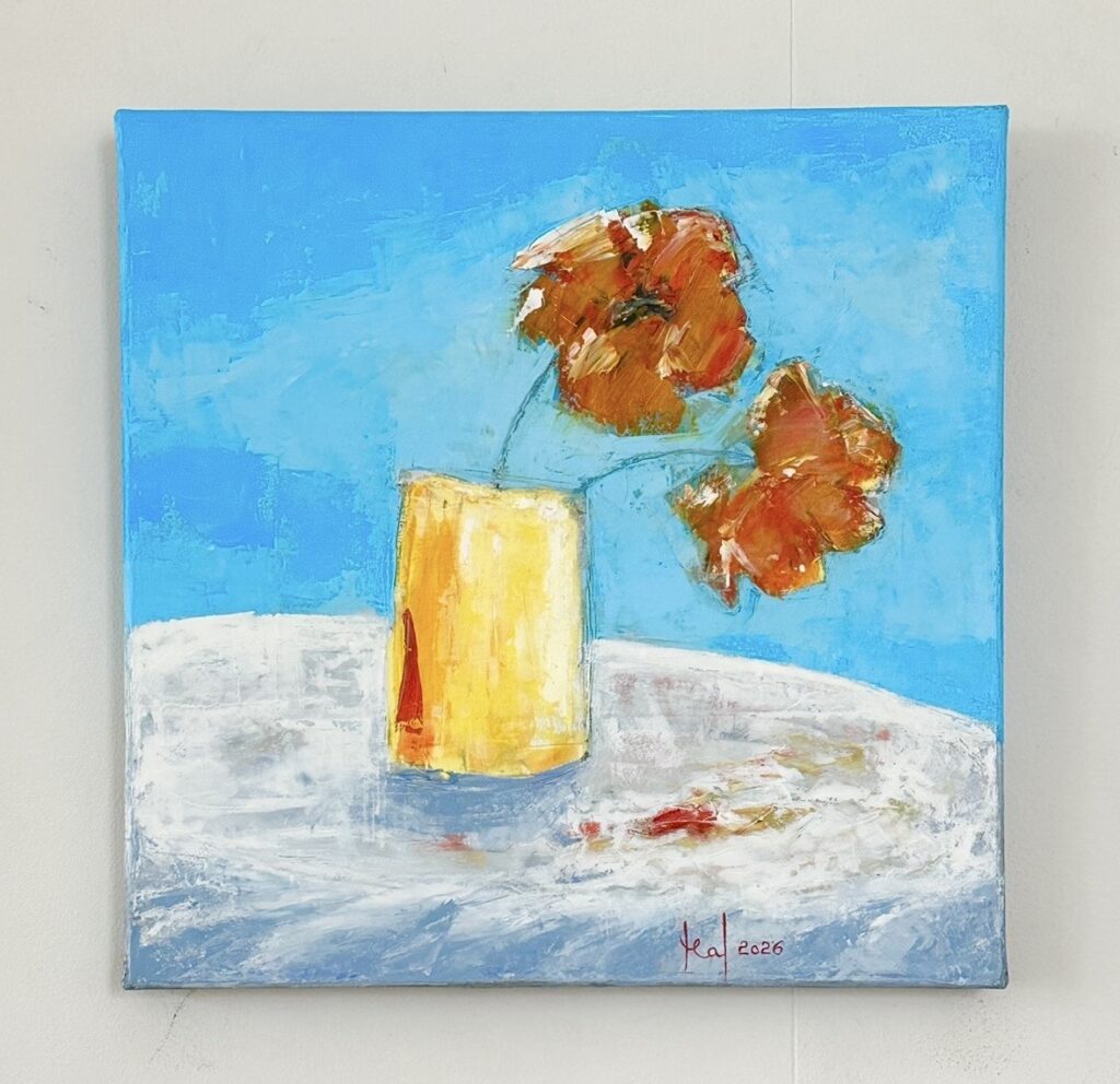 Above, you can find my available artworks currently for sale and information about coming exhibitions and events. If you’re interested in a piece, please send me an email, and we can arrange delivery.